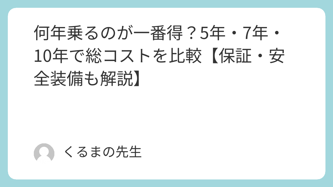 営業時代によく聞かれた質問です。この記事では5年・7年・10年の総コストを数字で比較しながら、あなたに合った答えを整理します。
