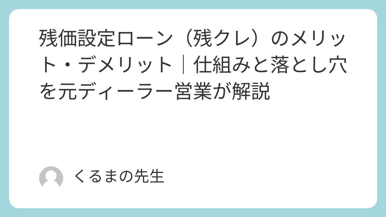 残価設定ローン(残クレ)のメリット・デメリット|仕組みと落とし穴を元ディーラー営業が解説
