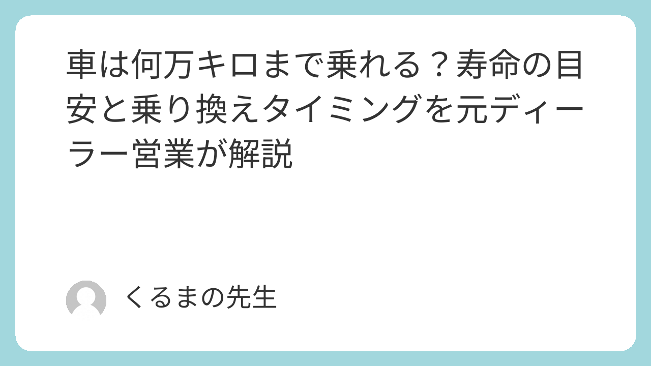 この記事を読めば、走行距離と車の寿命の関係が正しく理解できます。「10万kmは危ない」という誤解を解いた上で、自分の乗り換えタイミングを数字で判断できるようになります。