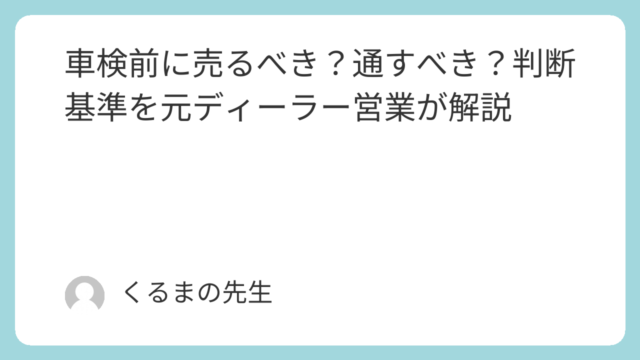 そのため理想は、車検の半年前から検討を始め、車検前に乗り換えを完了させること。これが最も無理のない流れです。