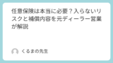 「任意保険って本当に必要なの?」「できるだけ安くしたいけど、どこまで削っていいの?」