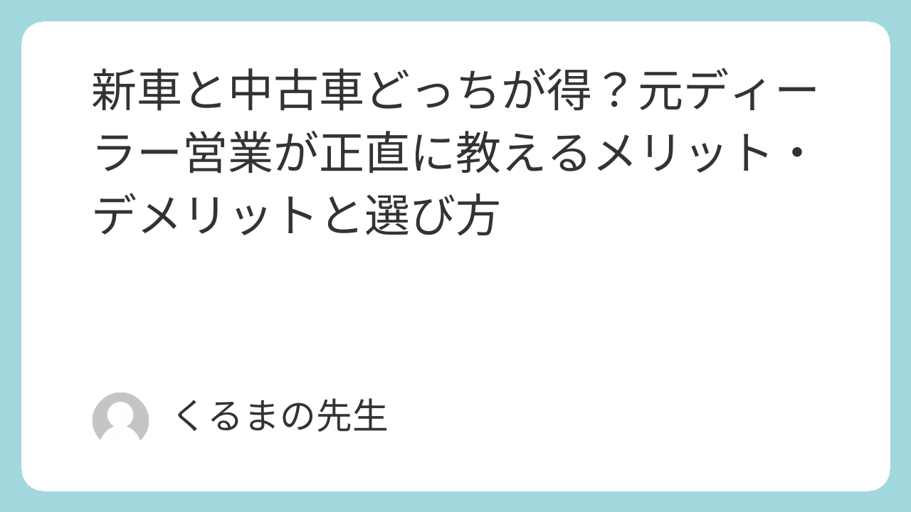 この記事を読めば、新車と中古車それぞれの本当のリスクと、あなたに合った選び方が明確にわかります。